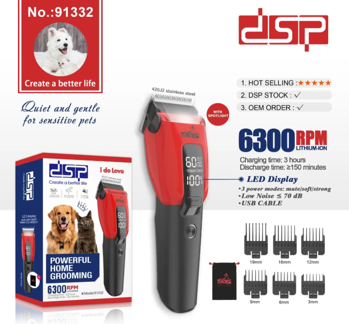 მოკლე ჩართვისგან დაცვითაქსესუარები: USB კაბელი, ჯაგრისი, 6 სავარცხელი (3მმ, 6მმ, 9მმ, 12მმ, 16მმ, 19მმ), ზეთი, სავარცხელი