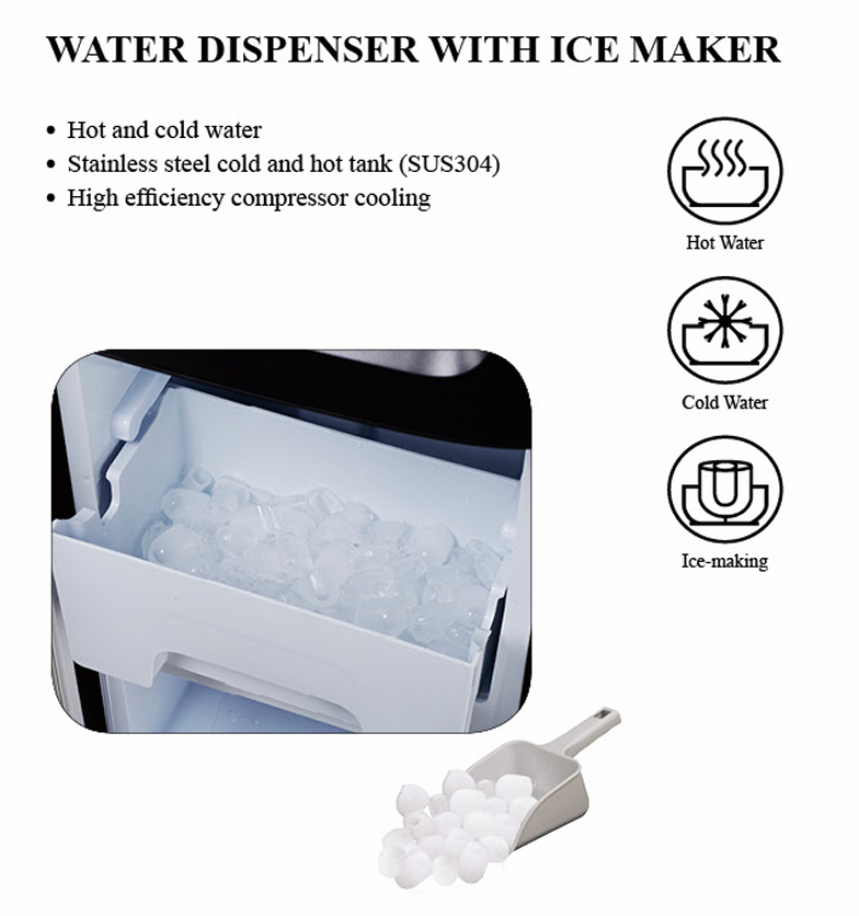 წყლის დისპენსერი ყინულის აპარატით,