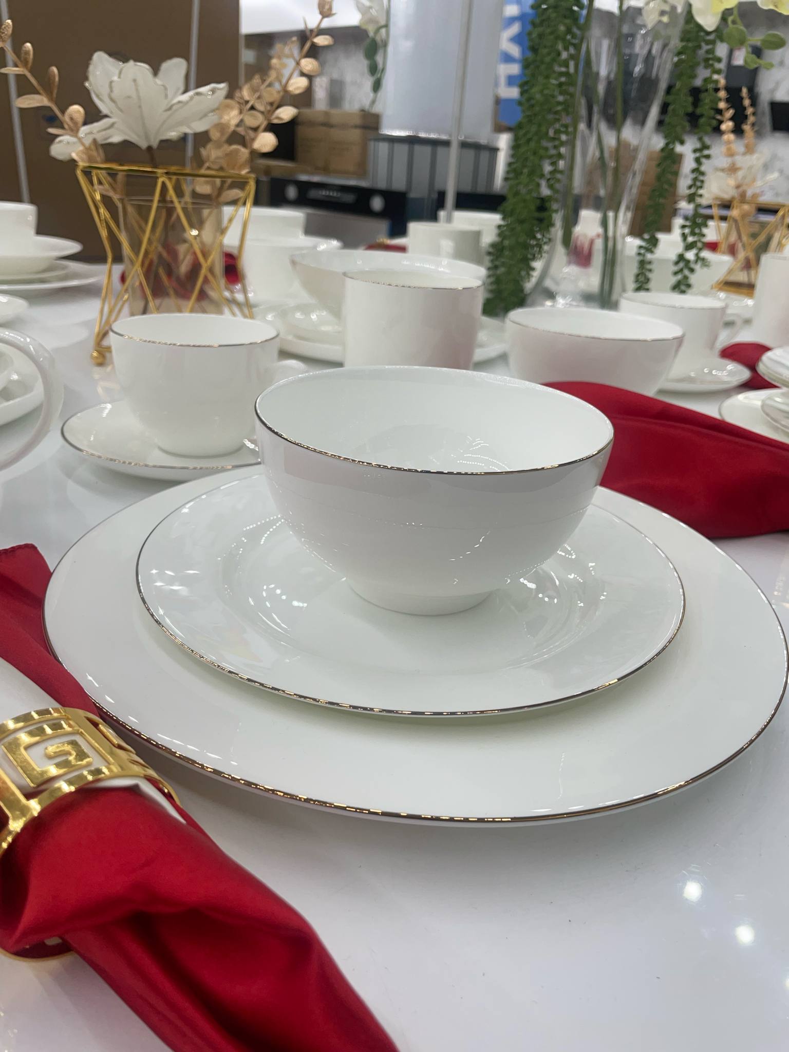 დიდი (სადილის) თეფში ოქროსფერი კანტით